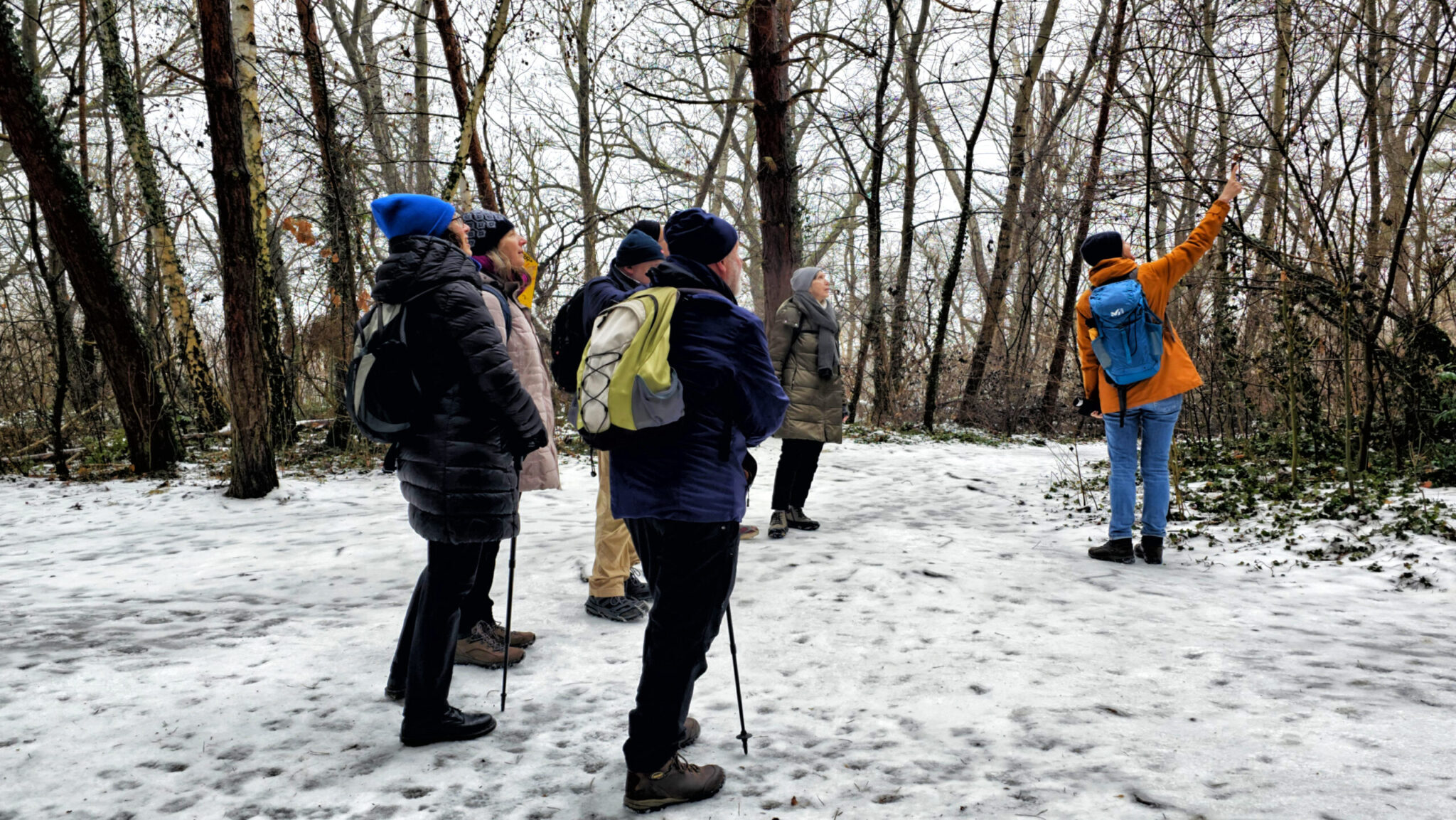 Von Susanne gab es unterwegs zwei sehr interessante naturkundliche Erkläreinschübe zum Thema Flora (der immergrüne Efeu) und Fauna (die Aktivität der heimischen Spechtarten momentan) in perfekter Länge. Ergänzend dazu konnte Wanderführerkollege Steffen Hercher als gebürtiger Babelsberger immer wieder wissenswerte Fakten zu kulturhistorischen Begebenheiten vor Ort beisteuern. In der Form eine wunderbare Kombination!
